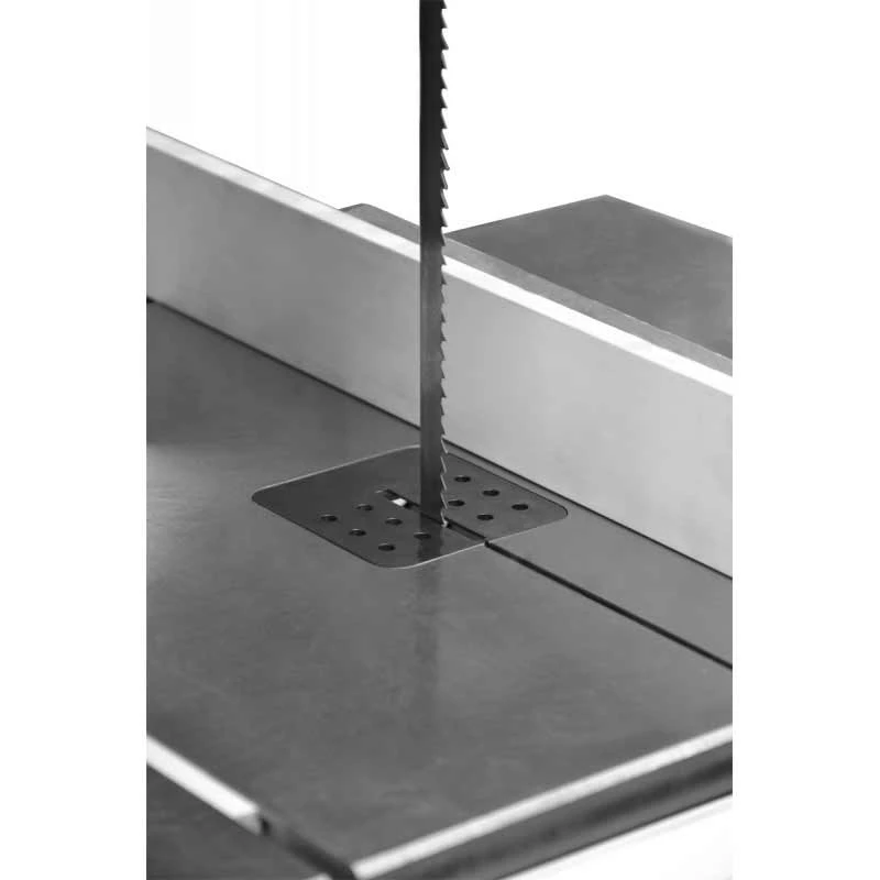 - Un indicateur de tension de la bande permet de régler celui-ci très facilement lors du changement de la lame