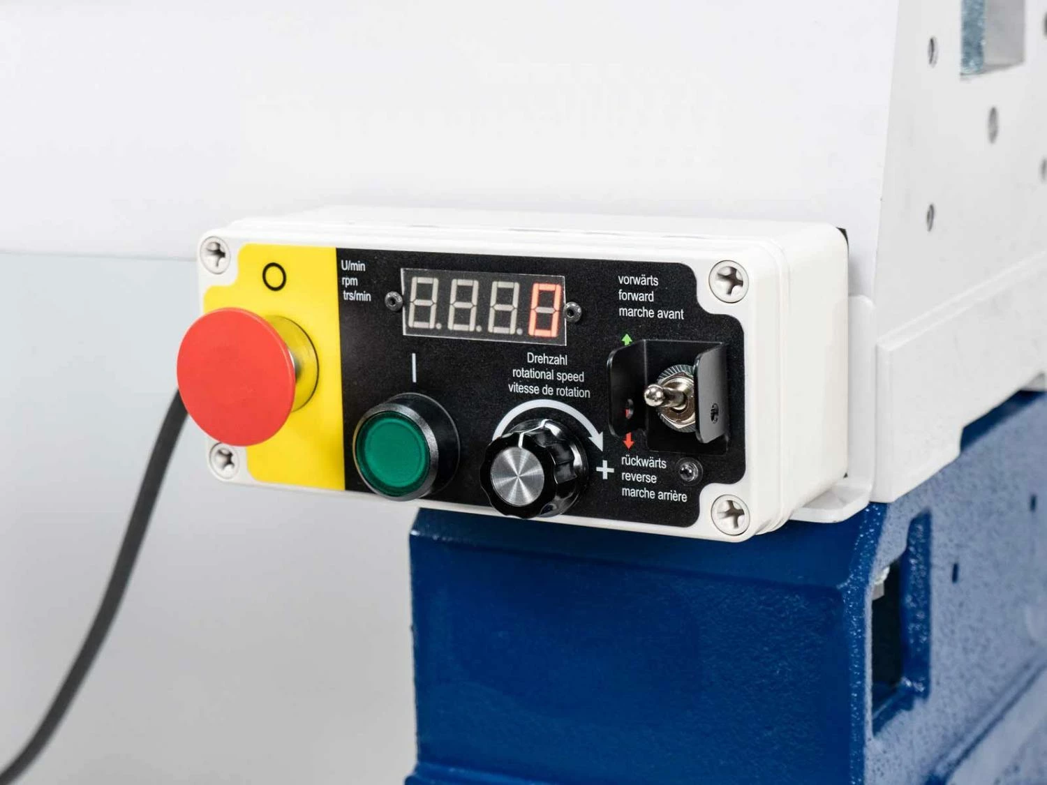 - Boîtier de commande magnétique avec affichage numérique de la vitesse intégré : la vitesse peut être lue aussi bien sur la poupée principale que sur le boîtier, un gain de confort et de facilité de travail considérable !