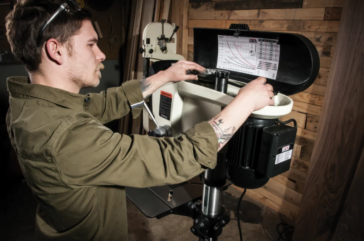 - Cache-courroie avec interrupteur de fin de course pour un travail sûr.