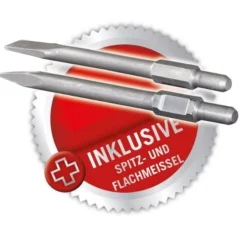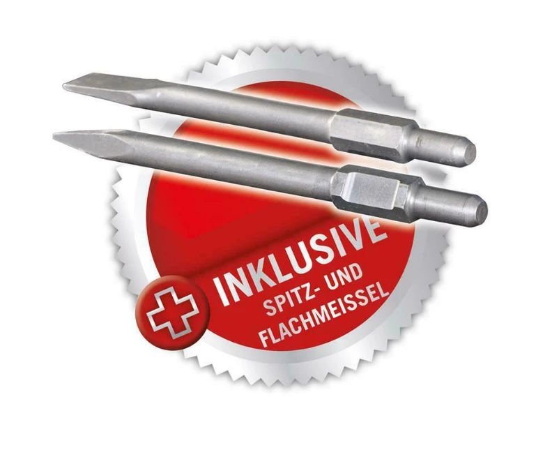 - Livré avec un burin plat, une pointerolle et une mallette en métal.