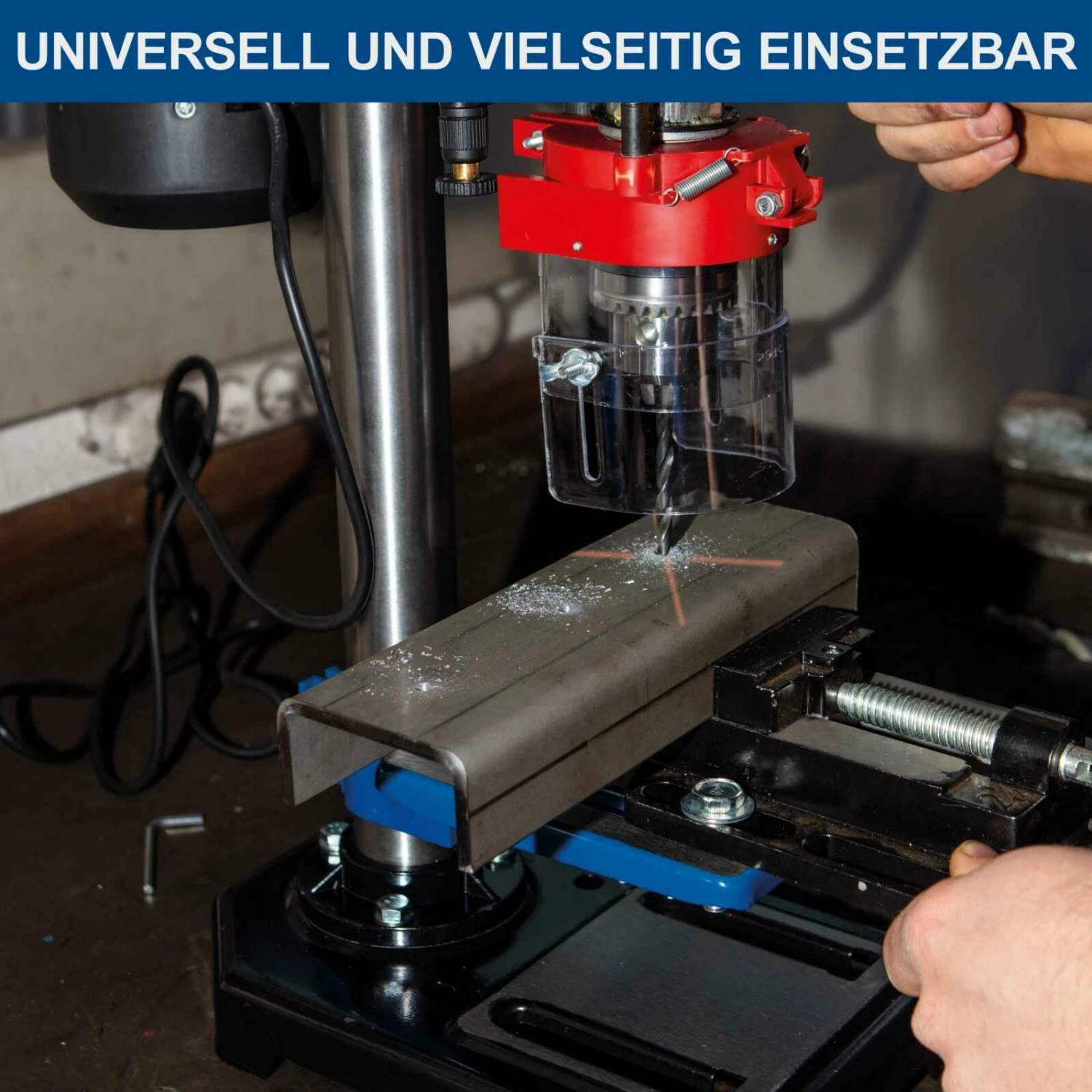 - Dotée d’un mandrin pouvant se déplacer de 3 à 16 mm, elle possède donc également une bonne amplitude de travail, complétée par son étau qui renforce le confort lors de l’usinage et la stabilité de la pièce lors du perçage.