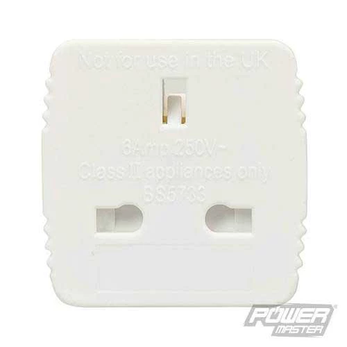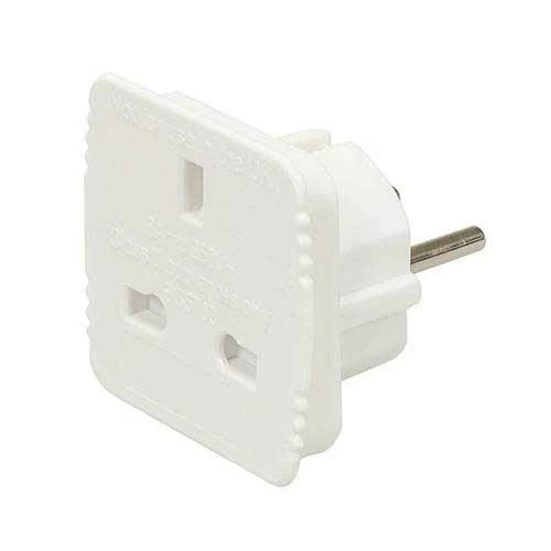 Adaptateur 230 V permettant de convertir des fiches anglaises à 3 broches en fiches européennes à 2 broches.