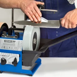 Le bac à eau comprend un aimant puissant qui attire les particules d’acier qui se détachent des outils en cours d’affûtage. Cela préserve la propreté de votre meule qui peut couper plus librement.