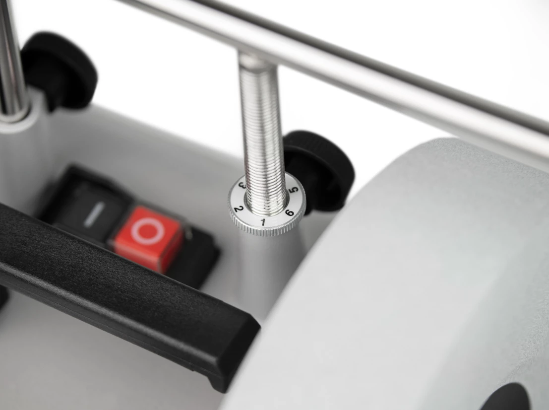 Permet de garder une meule toujours parfaitement plane et ronde. La profondeur de coupe est contrôlée et ajustée avec précision grâce au réglage micromrométrique sur le support universel.