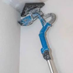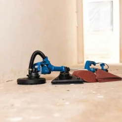 La ponceuse DS930 Scheppach permet de poncer les mûrs et les plafonds. Grâce à l’orientation de sa tête de 0° à 90°, le ponçage des plafonds peut être réalisé directement depuis le sol grâce à sa tête large et orientable.
